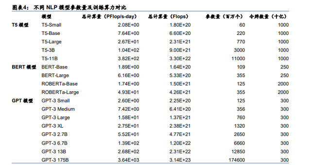 以ChatGPT为例,2018年Open AI在训练GPT-1时,所用到的参数数量和数据训练量分别为1.17亿和5GB。但在2020年训练GPT-3时,以上两项数字则分别增长到1750亿和45 TB(1TB=1024GB),GPT-4的训练参数量更是高达1.6万亿。
