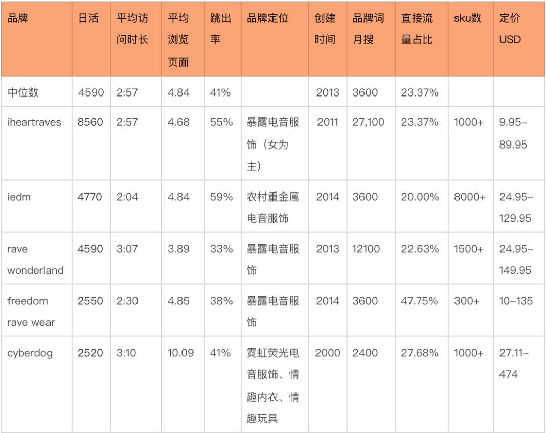而电音服饰的全球品牌站只有5个,全部都是海外卖家,下图是品牌站的网站数据。